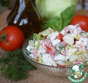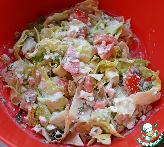 Салат предлагаю использовать сочный и хрустящий, лучше всего - айсберг или фриллис. -