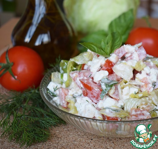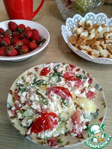 Предлагаю вашему вниманию легкий, но сытный салат из овощей и творога. А в летнюю жару он вполне заменит обед или ужин. И даже для завтрака это отличный вариант, т. к. этот салат я готовлю без лука.
