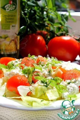 Вообще, творог в салатах мне нравится в сочетании с луком. Но не всегда можно позволить себе есть лук в течение дня ;) Поэтому для этого салата я так подобрала ингредиенты, что и вкус получается яркий, и свежесть дыхания не страдает)))