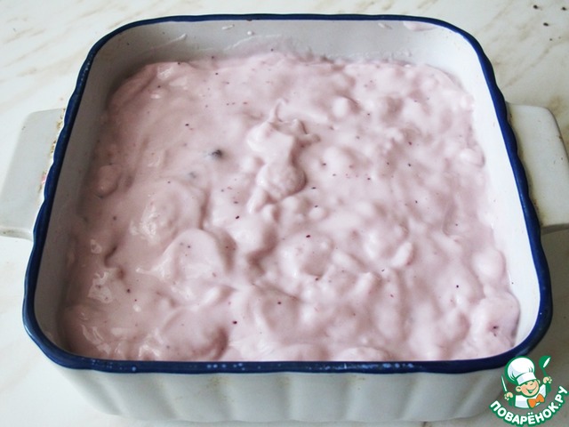 На йогурт выкладываем ягоды и заливаем желе.