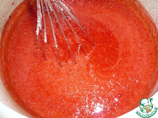 Когда пюре начнёт слегка закипать (первые мелкие пузырьки) всыпьте смесь сахара и квиттина (смесь насыпайте постепенно) и постоянно мешайте венчиком.