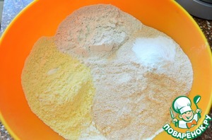 Смешать все виды муки, разрыхлитель, соль. -