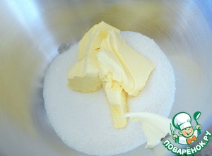 Сахар, сливочное и растительное масла взбить.