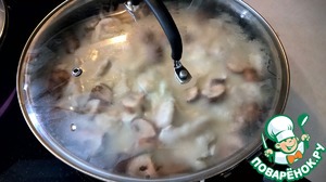 Заливаем курицу бульоном - так, чтобы бульон проступил через кусочки курицы