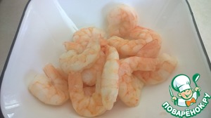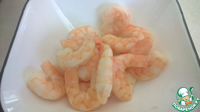 • Если креветки не вареные - отвариваем, кидая в кипящую воду на 2 минуты