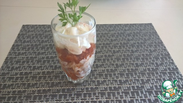 Рецепт «Креветочный салат-коктейль с красным снегом»: