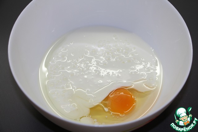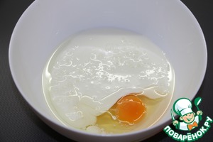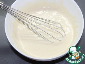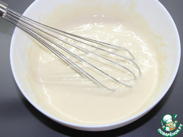 Соединить обе смеси: сухую и жидкую, вымесить венчиком. Миксером пользоваться не советую, не будет пышности.