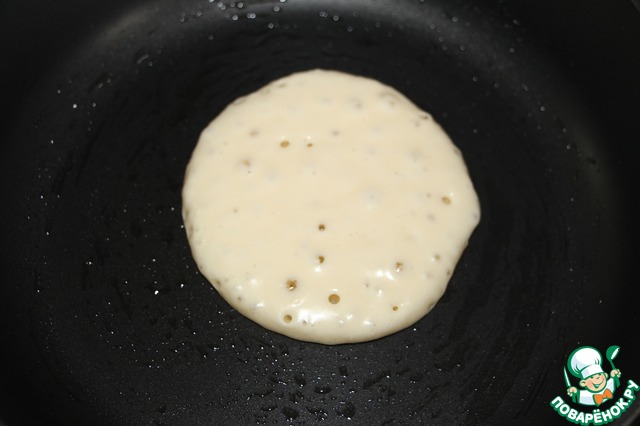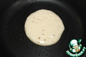 Сковороду смазать маслом один!!! раз, совсем чуть-чуть. Нагреть сковороду и выпечь панкейки. Минуты три с одной стороны и две-три минуты, перевернув.