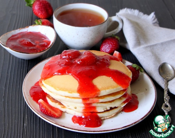 Пожалуй, вряд ли найдется человек, который не любил бы оладьи, хоть и назови их панкейки. Да еще с ароматным, только что сваренным клубничным конфитюром. Мечта!