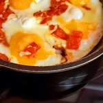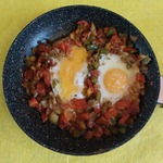 Но я полностью согласна с предыдущими комментариями - это не шакшука. Я ни в коем случае не хочу сказать , что ваше блюдо невкусное, но Давайте называть вещи своими именами. Шакшука из Алжира или Ливана , Израиля или Марокко не сильно отличается. И яйца ни в коем разе не обжариваются на масле. Не знаю, где вы видели шакшука , обжаренную на масле... Делается томатный соус с овощами и в него разбиваются яйца. Получается что то вроде яйца пашот , но в томатно- овощном соусе. Поэтому она и подаётся в сковороде, так как выложить ее на тарелку, мягко говоря сложно.