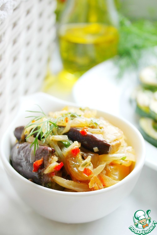 Выложить слоями лук- баклажаны- лук- баклажаны.