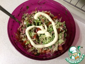 Смешиваем и получается вот такая красота. Можно заправить подсолнечным/оливковым маслом.