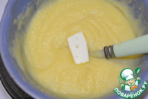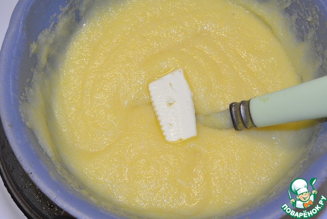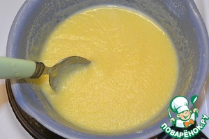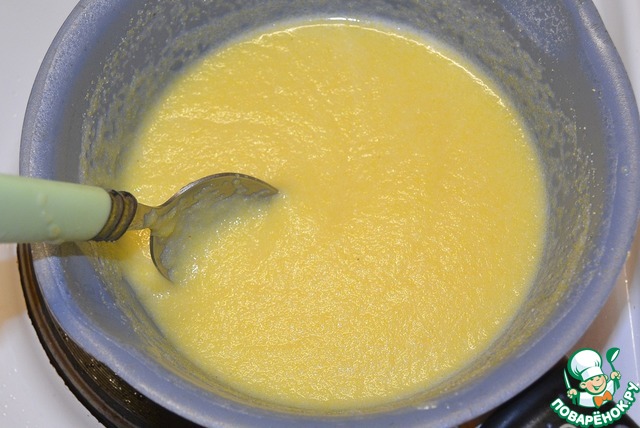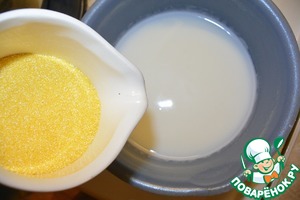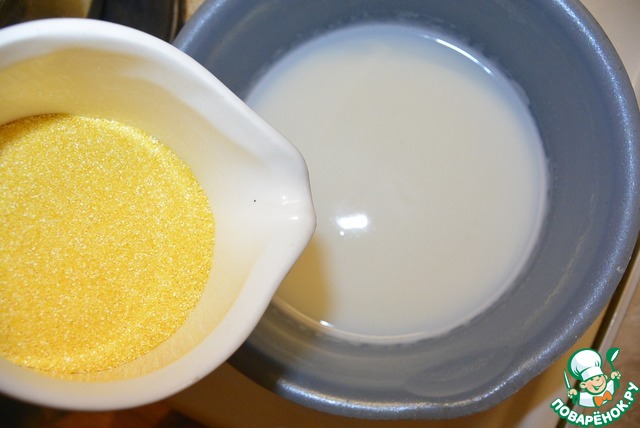 Как закипит, при постоянном активном помешивании (это нужно для того, чтобы не образовались комочки), ввести манную (у меня кукурузная) крупу.