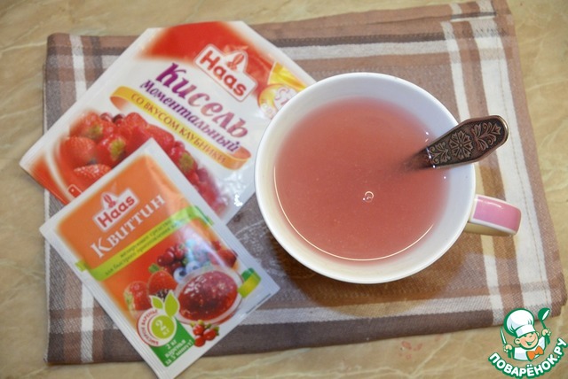 Ну, и, конечно такой десерт нужно запить чем-то горячим и не менее вкусным. Например ароматным киселем из пакета с сухой смесью со вкусом клубники от ТМ "НААS"!