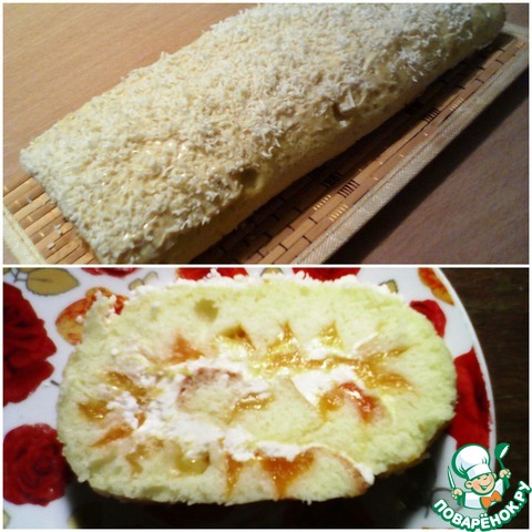 ... помогая себе полотенцем, свернуть бисквитный пласт рулетом. Остудить в таком виде минут пять.