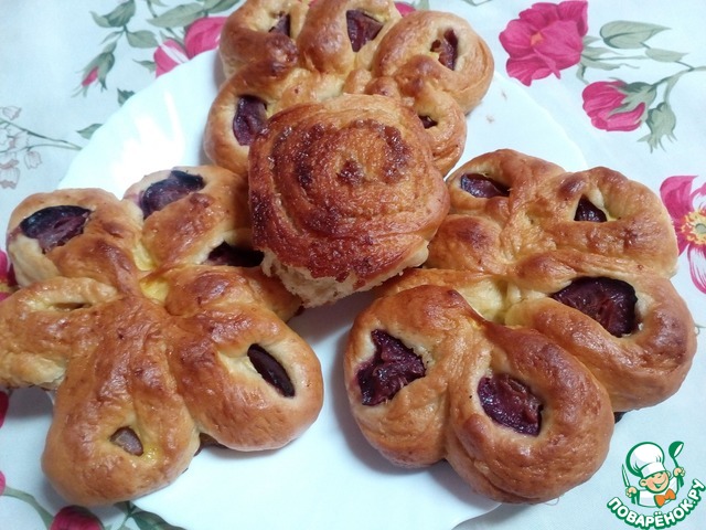 Рецепт «Булочки "Вишнёвые цветы"»: