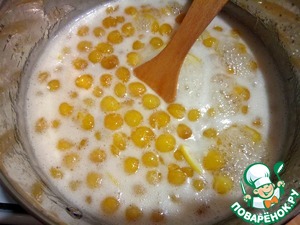 Черешню переложить в кастрюлю, и добавить 180 мл воды, накрыть крышкой и довести до кипения, затем проварить 5-10 минут. Черешня даст сок, на фото черешня уже обварена. -