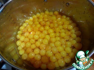 Довести до кипения и варить до готовности еще 20-25 минут, ближе к концу варки снимайте пену с варенья, чтоб сироп оставался прозрачным.
