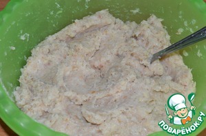 Хорошо перемешать, если фарш жидковат, добавить пару ложек панировочный сухарей.