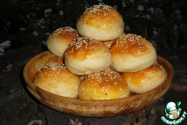 7. Смазать булочки 1 желтком с 1 ст. л. молока. Присыпать сверху кунжутом.