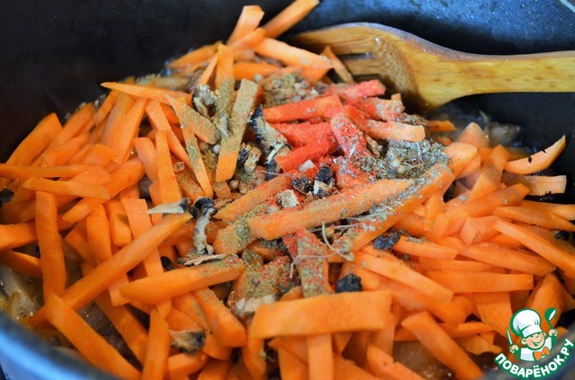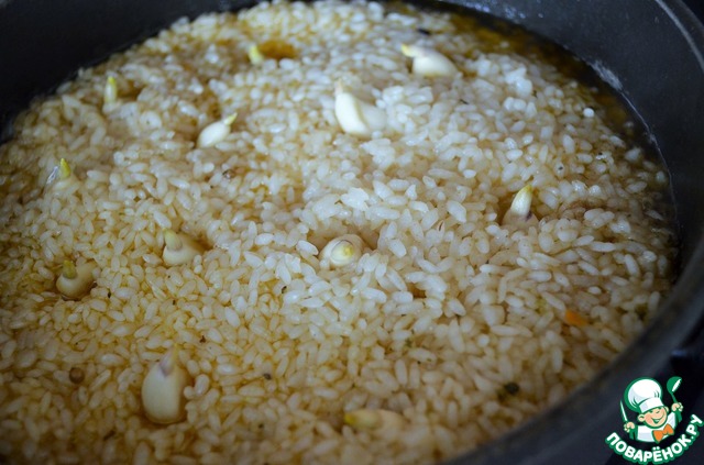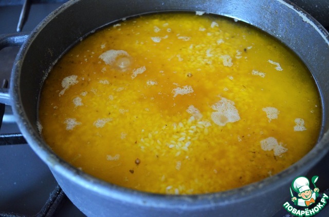 Посолить чуть сильнее, т. к. далее будем добавлять рис.