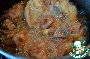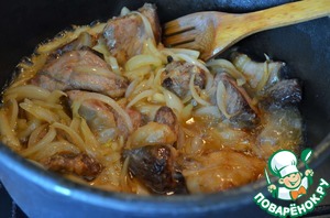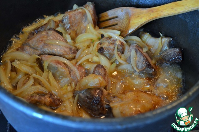 Влить 1 стакан кипятка, убавить огонь и тушить 20-25 минут. -