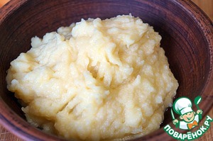 Приготовить картофельное пюре. Яйца, сливки, сливочное масло предварительно вынуть из холодильника, согреть при комнатной температуре. Картофель очистить, порезать каждую картофелину на 4 части, залить холодной водой, посолить, накрыть кастрюлю крышкой, довести до кипения, убавить огонь до среднего, варить 25 минут с момента закипания. Слить воду, добавить сливочное масло, растолочь, чтобы картошка немного остыла, добавить сливки, вбить яйца, растолочь до желаемой консистенции. Накрыть пюре – пусть остается теплым.