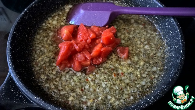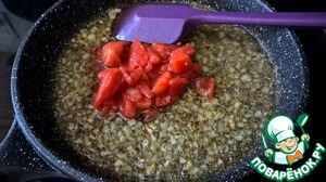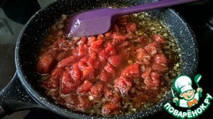 - Томаты в собственном соку (консервированные нарубленные томаты в собственном соку, можно брать и свежий помидор, но тогда нужно добавить 1 ч. л. томатной пасты - для цвета) — 100 г