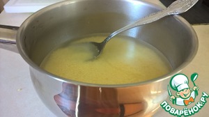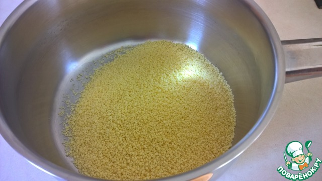 Когда чайник вскипел, заливаем кускус кипятком - так, чтобы вода была выше уровня кускуса примерно на 1 см.
