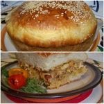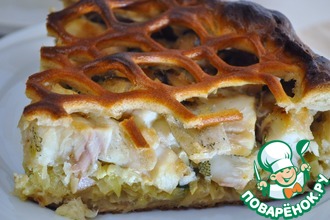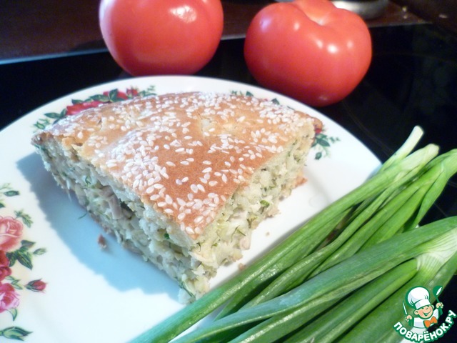 [+4]Тесто по вашему рецепту (без отрубей). Начинка- консервированный тунец, рис, лук, яйцо. Дочке, любителю заливных пирогов очень понравился.