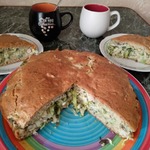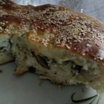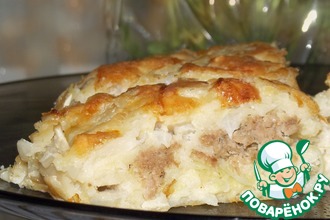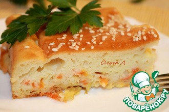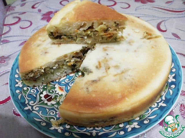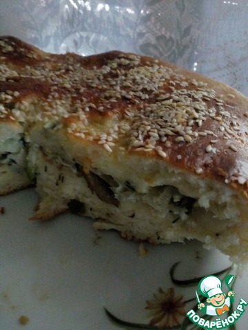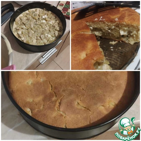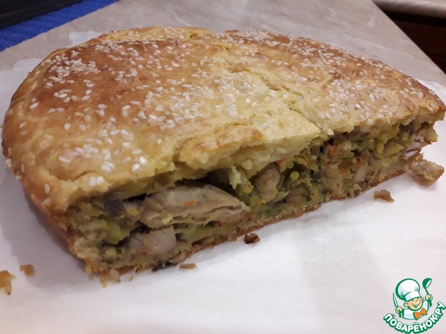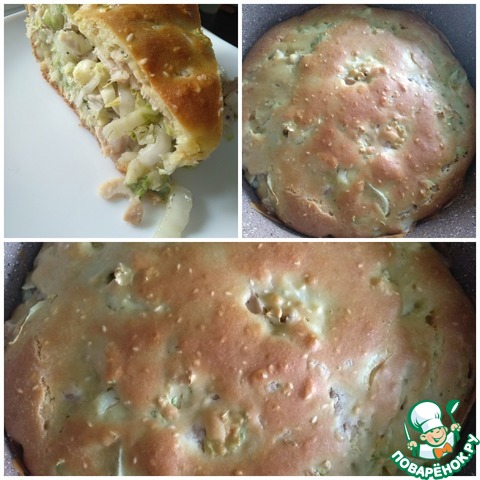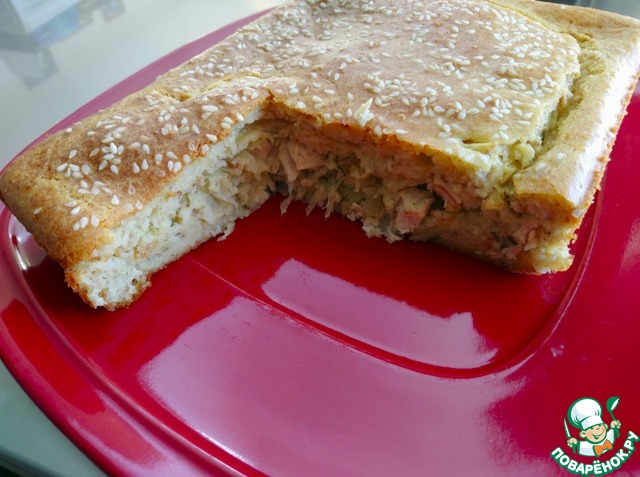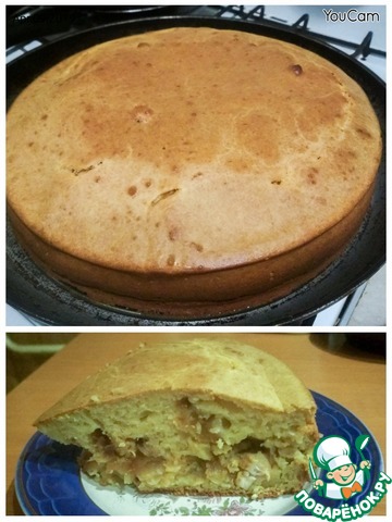 [+4]На форму 26 см взяла двойную норму. В начинку добавила обжареный лук, курицу не варила - обжарила вместе с луком. И про зелень вспомнил, уже когда убрала в духовку( Остальное по рецепту.