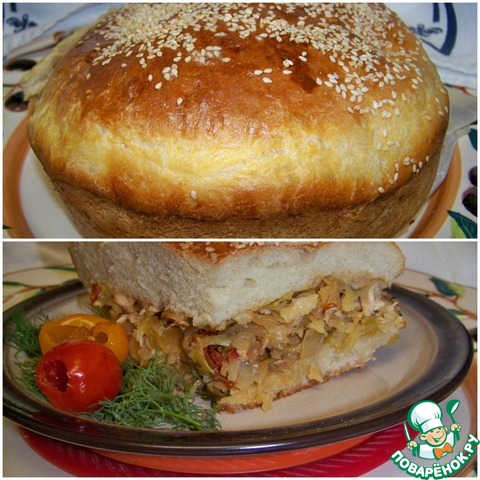 Начинка у меня всегда разная. Главное чтобы не очень влажная (жидкость максимально отделить)... Сегодня у меня обжаренные вешанки🍄 с луком,🥕, 🐔, а так как было много бульона добавила рис😉. Получилось 😋.