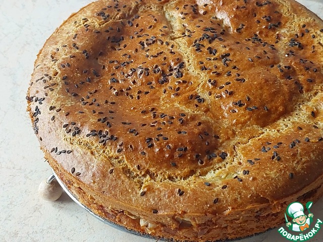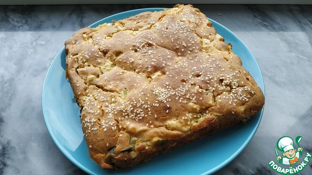 Выпекать пирог в заранее разогретой до 180° духовке 35-40 минут до равномерного румяного цвета.