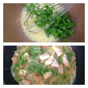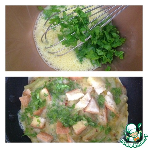 Яйца взбить с щепоткой соли. Добавить мелко нарезанную петрушку.