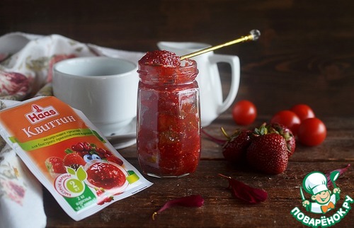 Этот десертный джем прекрасно подойдет для выпечки пирогов, печенья, да и просто очень вкусно намазать его на хлеб. Томат придаёт клубнике интересный вкус и аромат. Благодаря Квиттину ТМ HAAS джем получается очень густой, с насыщенным ярким цветом.