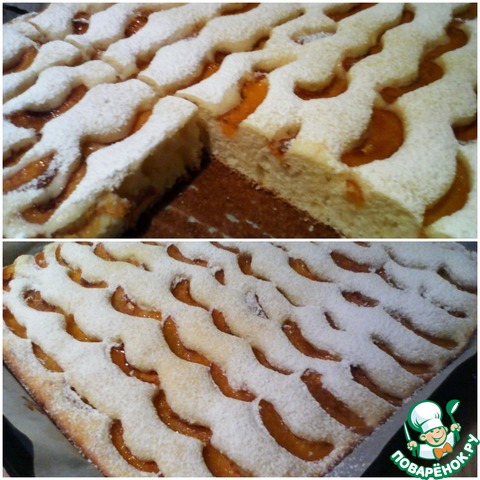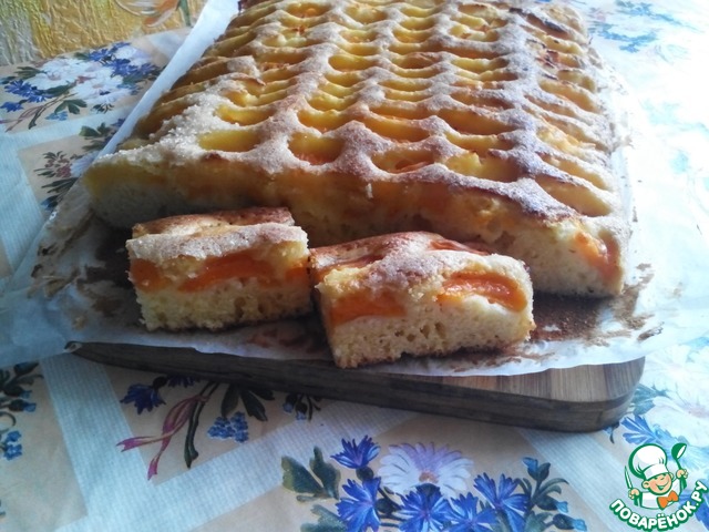 абрикосы у меня были мягкие и мелкие, я их оставила половинками. пекся не меньше часа, видимо из-за мелкого размера формы. еще я вижу этот пирог с яблоками, но обязательно очищенными