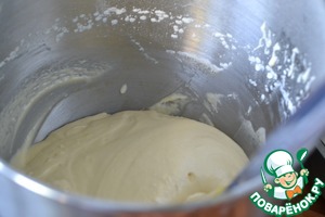 Не переставая взбивать, добавить сливки. -