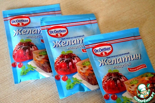 - Желатин (быстрорастворимый) — 1 пакет.