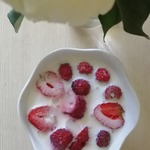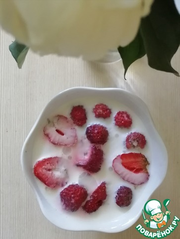 - Клубника (или - вишня, малина, ежевика, абрикос, персик, груша, банан) — 1 горст.