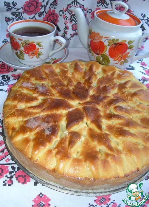 Верхний слой закрыла кружочком теста, а потом уже украсила "листиками". Главное, чтобы пирог был закрытым, чтобы сочность начинки осталась, а украшать по усмотрению. А дырочки для выхода пара не делала, начинка полностью готова. Но ведь при желании можно зубочисткой сделать небольшие дырочки!!!