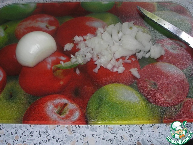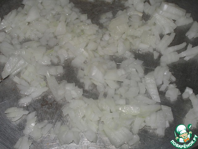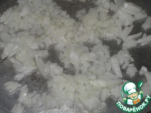 Лук обжарить на небольшом огне с добавлением 2 ст. л. растительного масла до золотистого цвета.