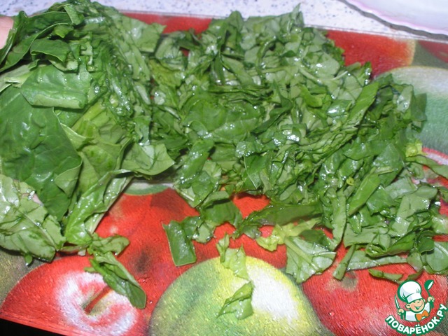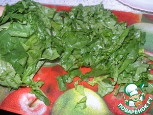 Шпинат промыть, обсушить и тоже мелко порезать.
