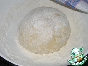 Присыпаю слегка мукой, накрываю чистым полотенцем и даю отдохнуть в тёплом месте около часа.