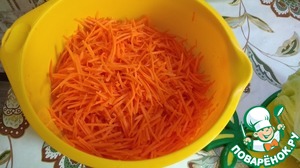 Трем морковь на терке для корейской морковки, чеснок режем на 2-3 части.