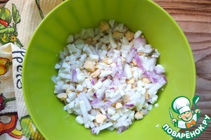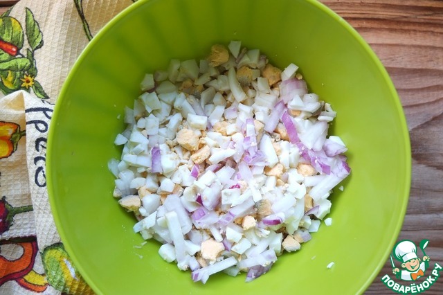 мелко нарезанные яйца и лук, солим по вкусу. -