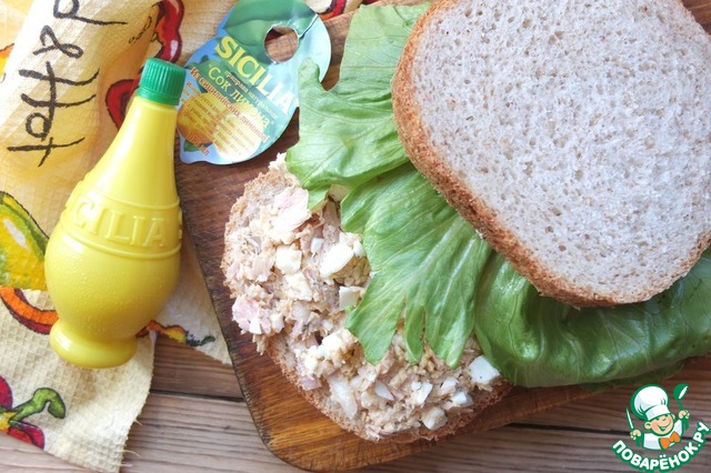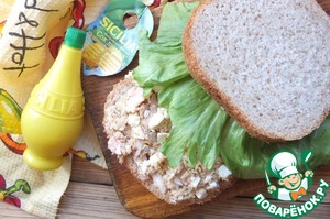 Из тунца сливаем лишнюю жидкость, измельчаем вилкой, добавляем