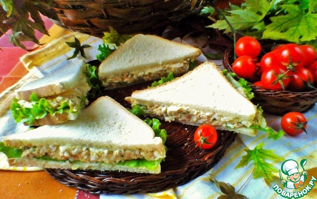 Готовые сэндвичи я слегка приплюснула и убрала в холодильник под не тяжелый пресс на 30 минут.