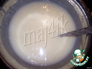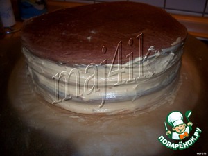 Испечь из каждой половины теста по 2 коржа, предварительно наколов их вилкой - получится 2 коричневых и 2 белых коржа.