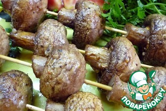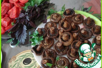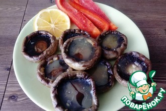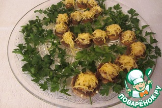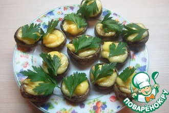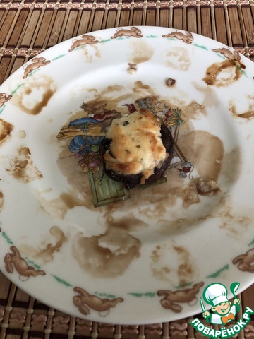 Собственно все. Вам остается присматривать, чтобы сырные шляпки не подгорели. Как только они стали коричневато-золотистыми - достаем и выкладываем на блюдо. Если успеете сделать снимок - присылайте. Я вот не успел.