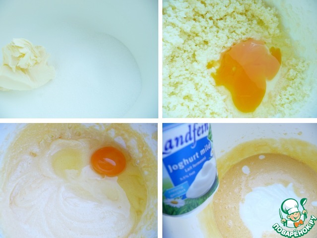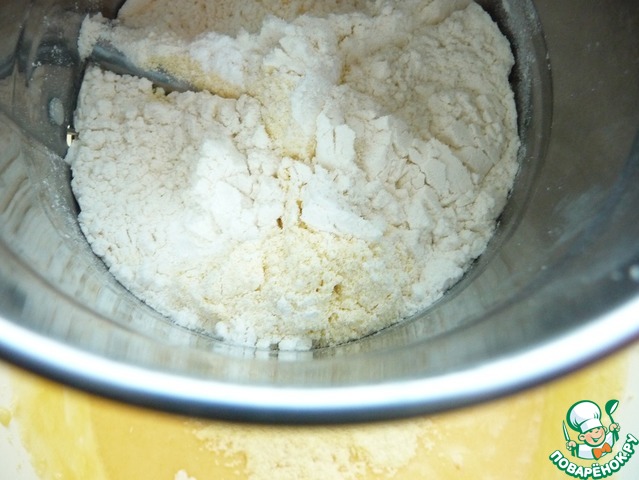 Просеить, добавляя частями в масляно-яично -йогуртовую смесь. -